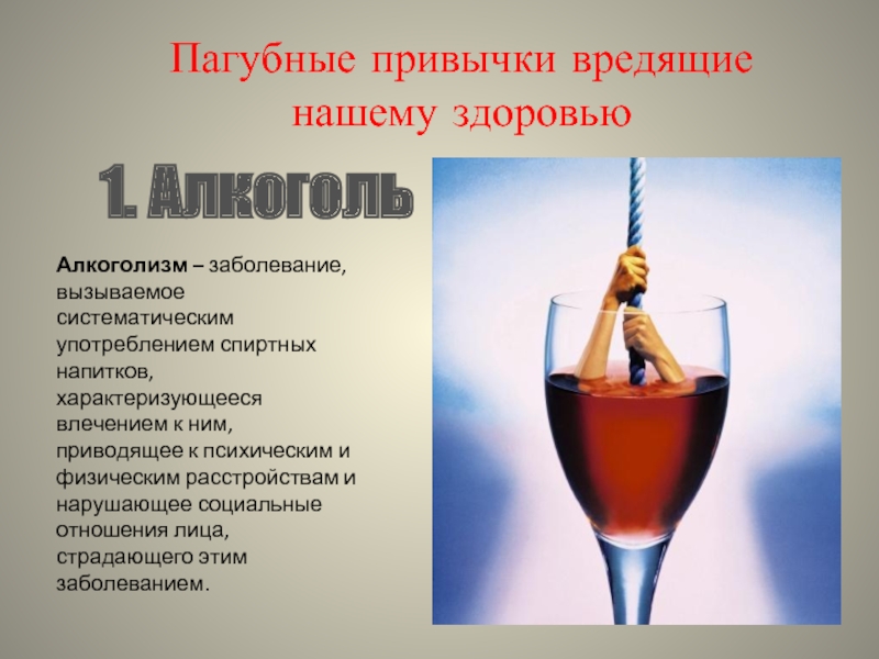 Алкоголизм – заболевание, вызываемое систематическим употреблением