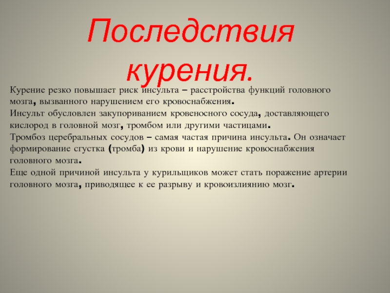 Курение резко повышает риск инсульта – расстройства функций головного мозга, вызванного