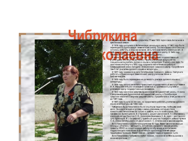 Чибрикина Анна Николаевна родилась 17 мая 1932 года