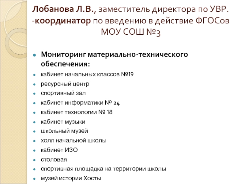 Лобанова Л.В., заместитель директора по УВР