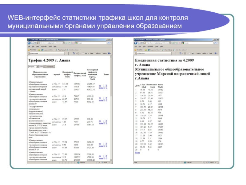 Предоставление гарантированной скорости доступа к региональным ресурсам и Интернет от 128 кбит/сек для небольших школ до 256 кбит/сек для школ с числом учащихся более 500 человек.