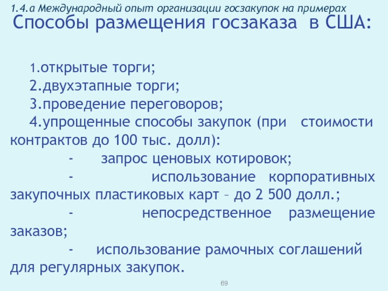 Слайд 681.4.а Международный опыт организации госзакупок на примерах