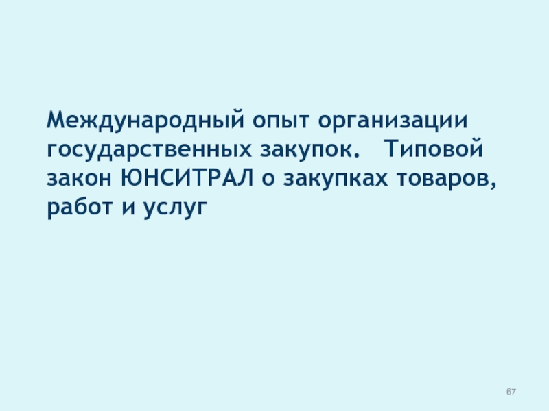 Слайд 67Международный опыт организации государственных закупок. Типовой закон ЮНСИТРАЛ о закупках