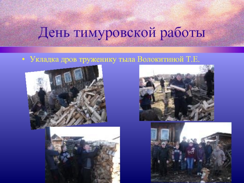 Укладка дров труженику тыла Волокитиной Т.Е.