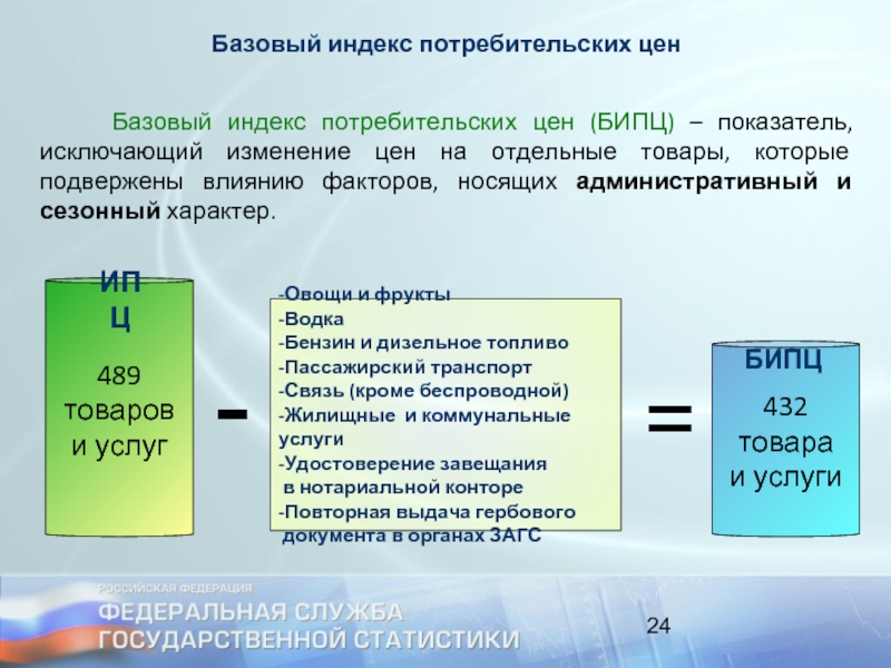 Базовый индекс потребительских цен (БИПЦ) – показатель, исключающий изменение цен на отдельные товары, которые подвержены влиянию факторов, носящих административный и сезонный характер.