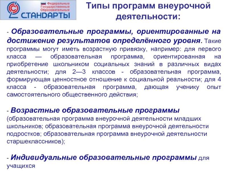 Все виды внеурочной деятельности должны быть строго ориентированы на воспитательные результаты