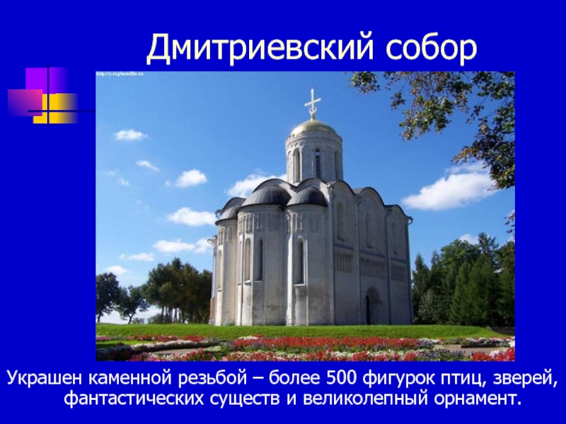 Украшен каменной резьбой – более 500 фигурок птиц, зверей, фантастических
