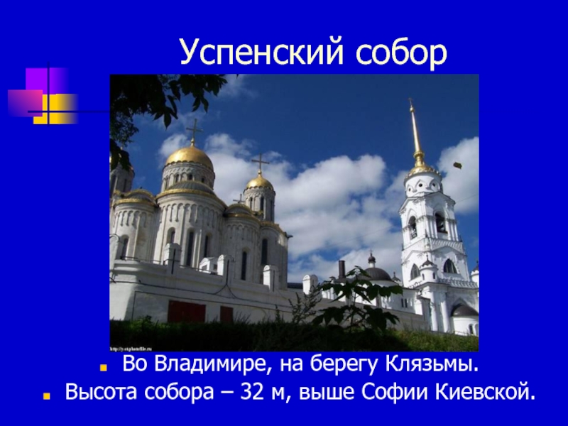 Построена недалеко от палат Андрея Боголюбского после кончины