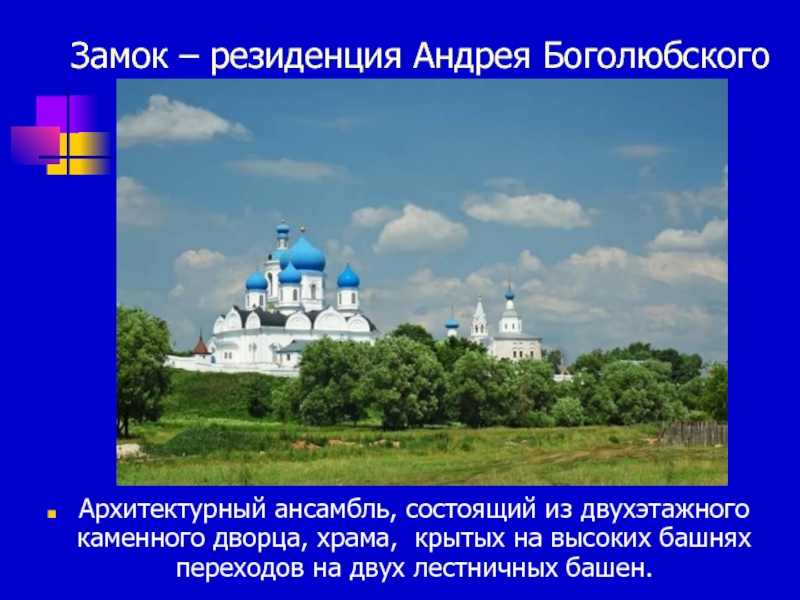 Слайд 15Замок – резиденция Андрея Боголюбского