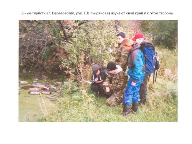 Слайд 15Юные туристы (г. Березовский, рук. Г.Л. Зырянова) изучают свой край и
