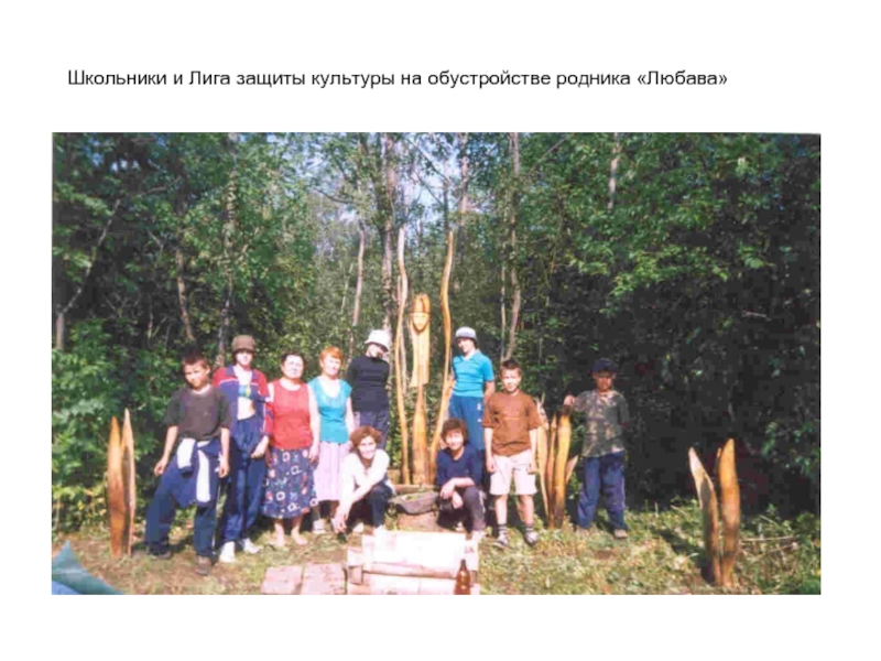 Слайд 22Школьники и Лига защиты культуры на обустройстве родника «Любава»