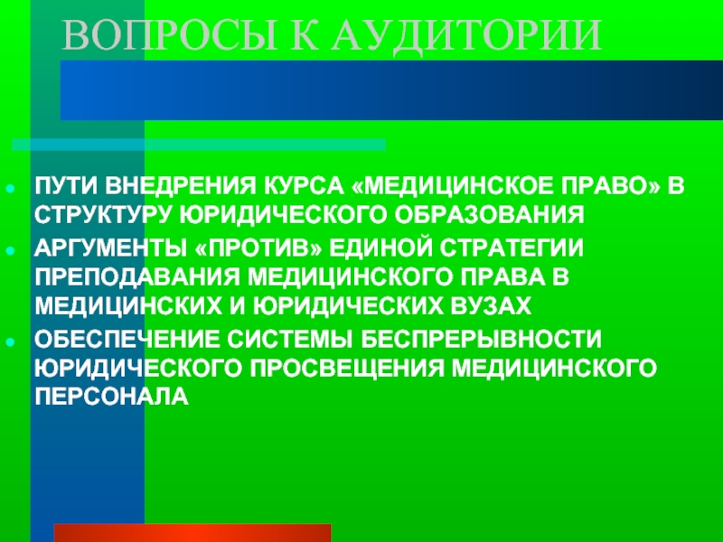 Слайд 8ВОПРОСЫ К АУДИТОРИИ