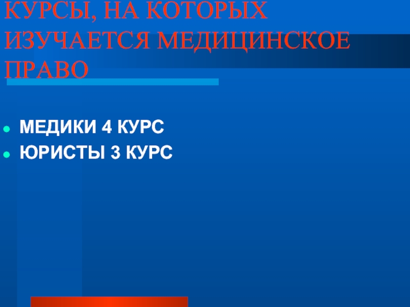 Слайд 7КУРСЫ, НА КОТОРЫХ ИЗУЧАЕТСЯ МЕДИЦИНСКОЕ ПРАВО