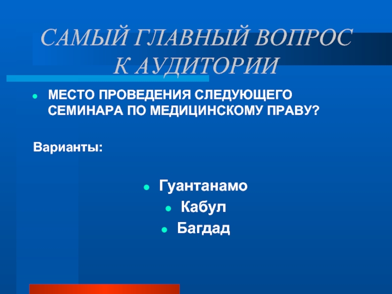 Слайд 9САМЫЙ ГЛАВНЫЙ ВОПРОС К АУДИТОРИИ