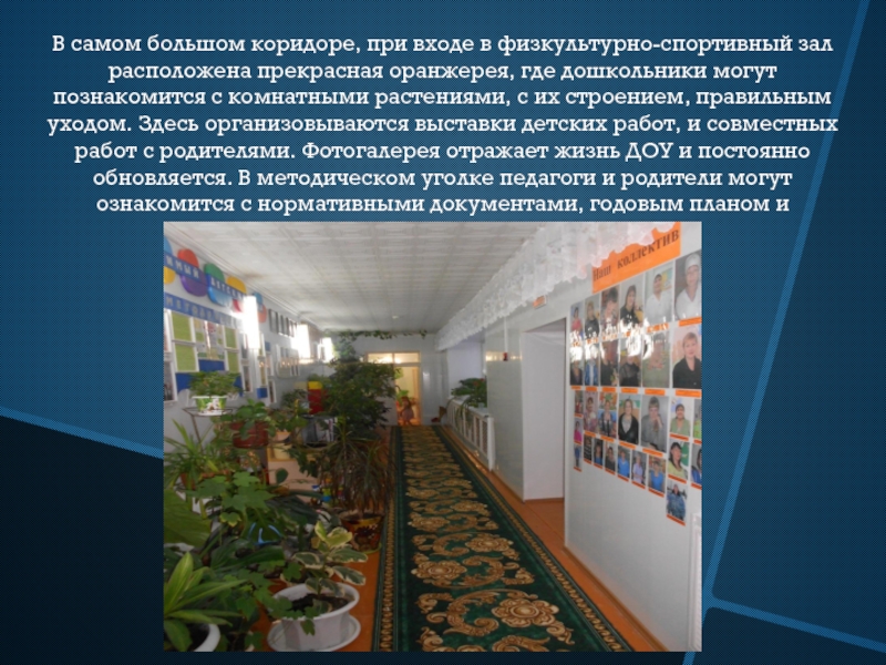 Слайд 29В самом большом коридоре, при входе в физкультурно-спортивный зал расположена прекрасная