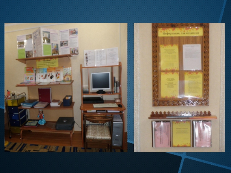 Слайд 23Методический кабинет служит в помощь педагогам и родителям, обеспечен методической, справочной,