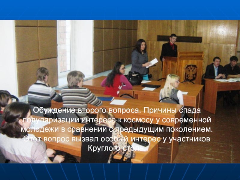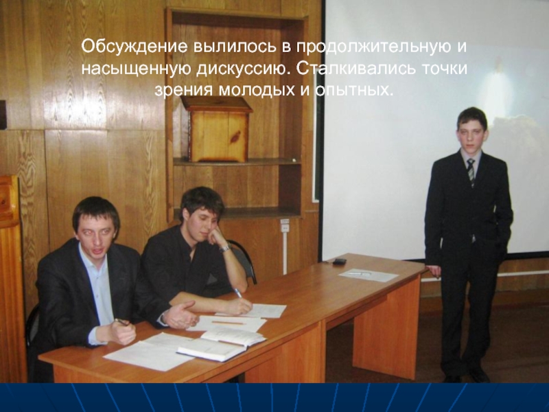 Слайд 35Обсуждение вылилось в продолжительную и насыщенную дискуссию. Сталкивались точки зрения молодых