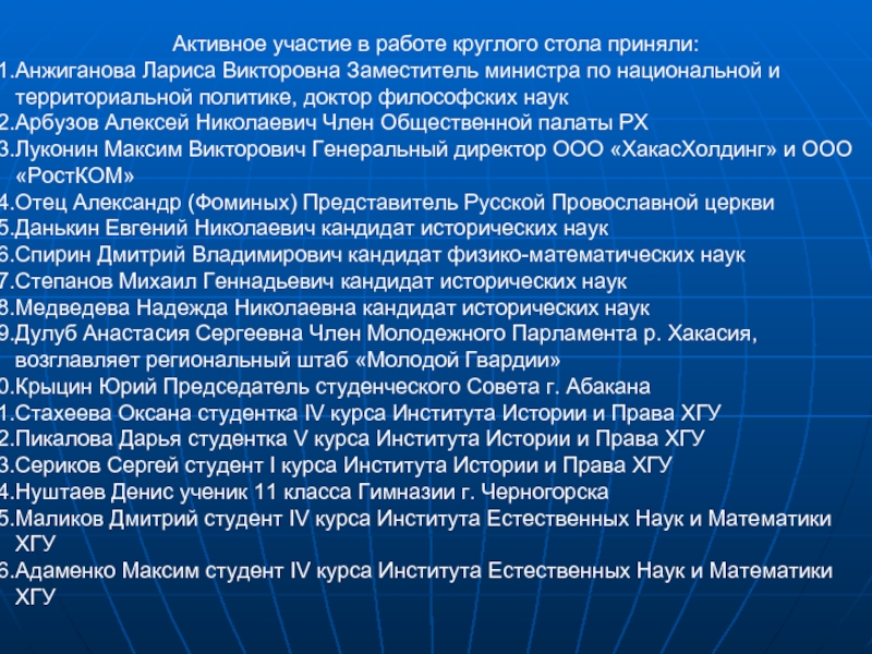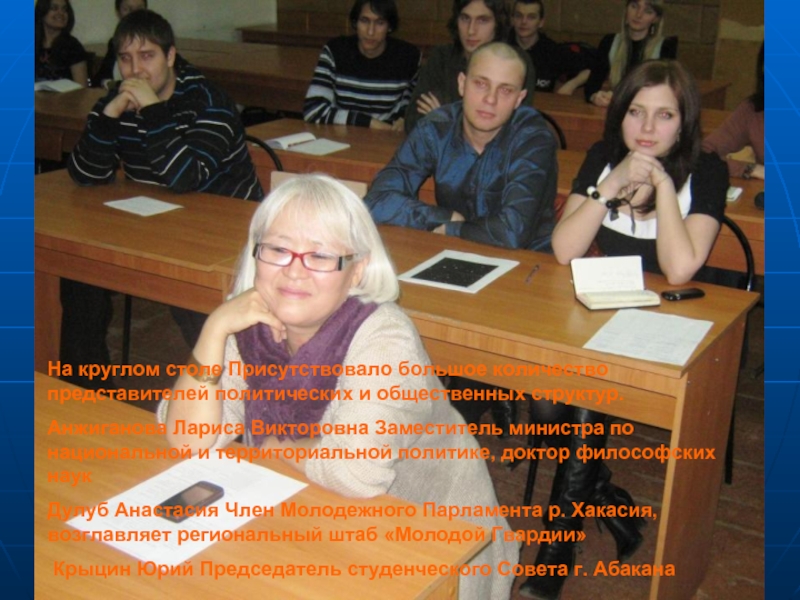 Слайд 41На круглом столе Присутствовало большое количество представителей политических и общественных структур.