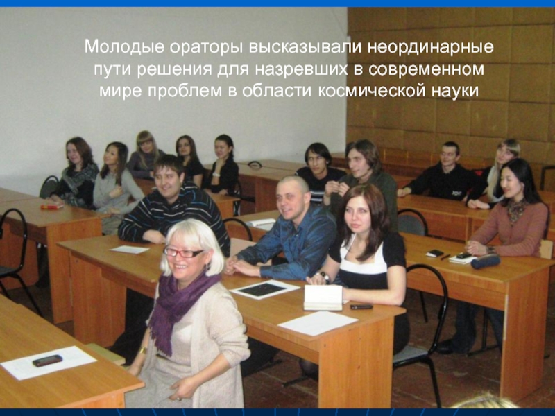 Слайд 38Молодые ораторы высказывали неординарные пути решения для назревших в современном мире
