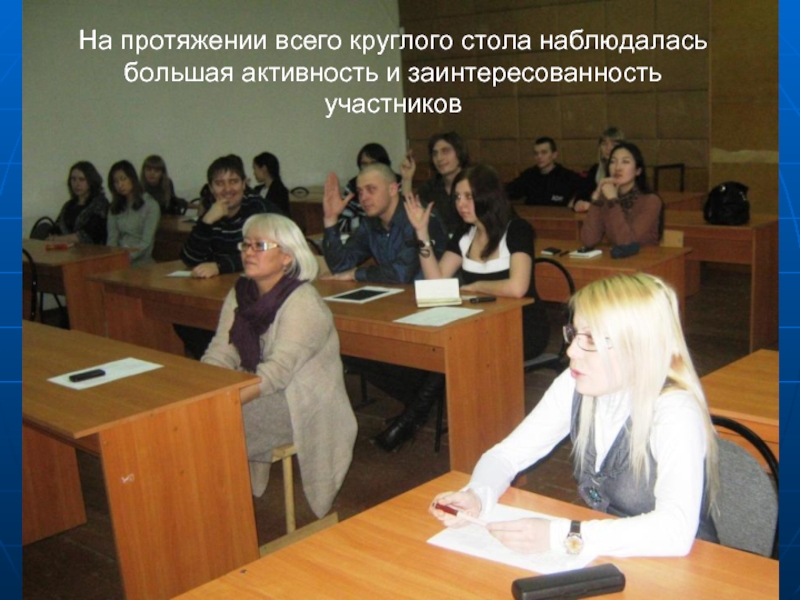 Слайд 36На протяжении всего круглого стола наблюдалась большая активность и заинтересованность участников