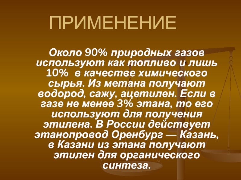 Около 90% природных газов используют как топливо и лишь 10% в