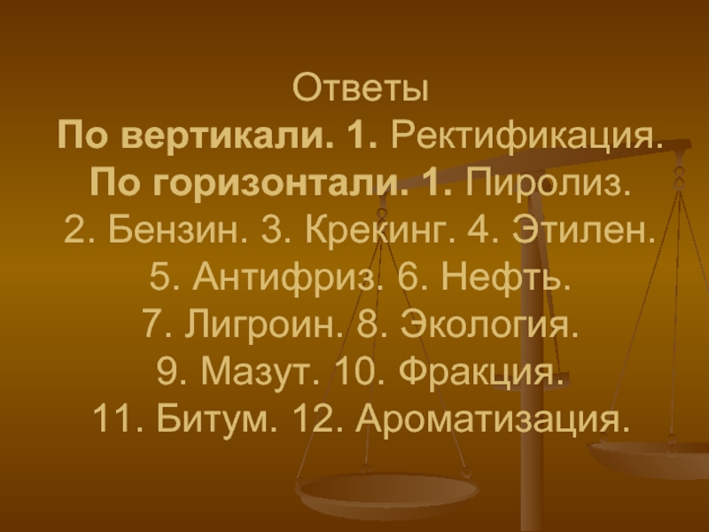 Слайд 13По вертикали. 1. Перегонка нефти.