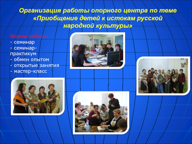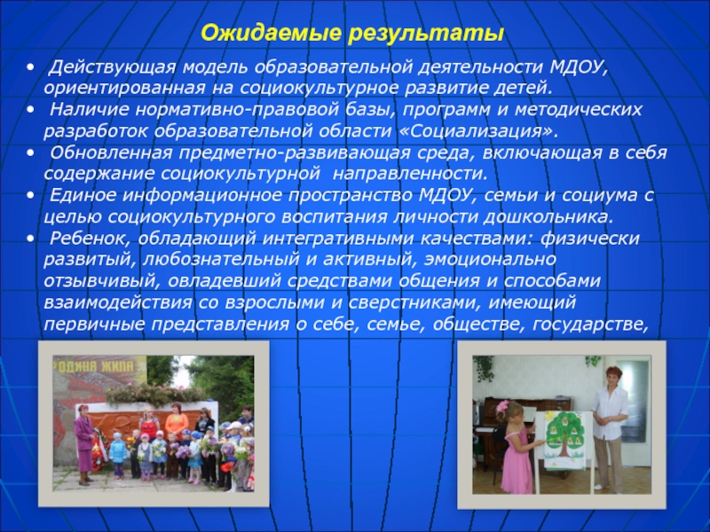 3. Совершенствование работы педагогического коллектива через повышение образовательных, профессиональных, теоретических и практических знаний педагогов по проблеме социокультурного развития детей, внедрение новых образовательных технологий.