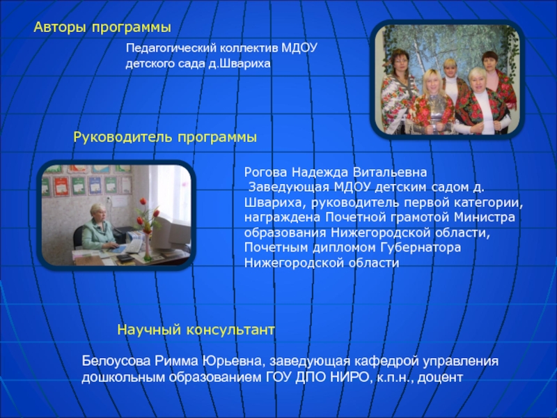 Белоусова Римма Юрьевна, заведующая кафедрой управления дошкольным образованием ГОУ ДПО НИРО, к.п.н., доцент