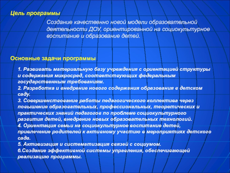 Основные задачи программы