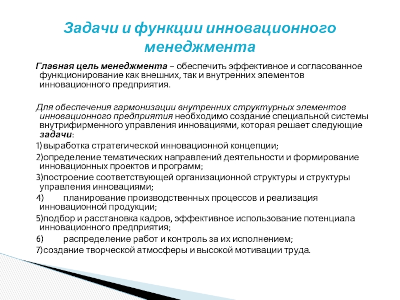 Задачи и функции инновационного менеджмента