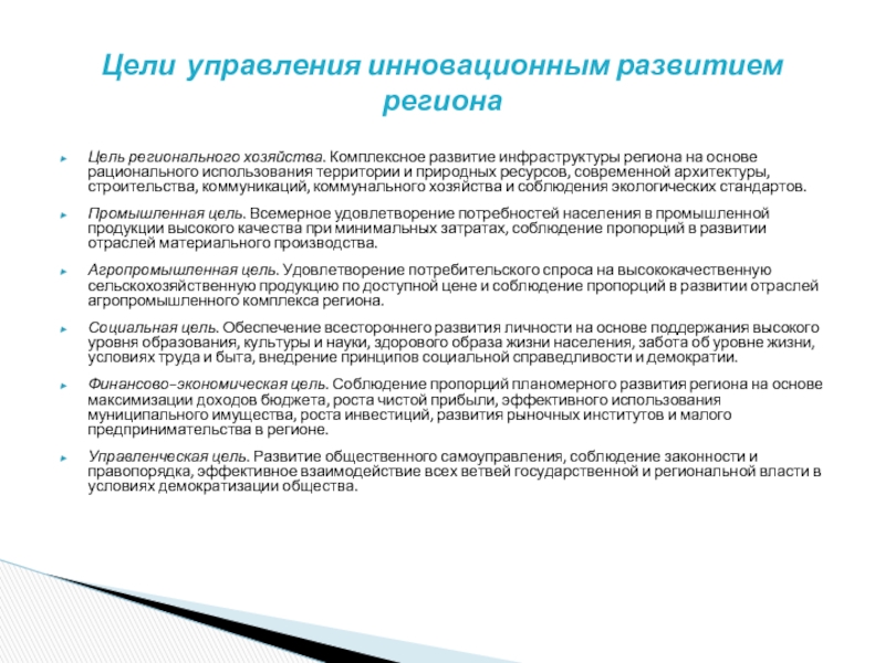 Цели управления инновационным развитием региона