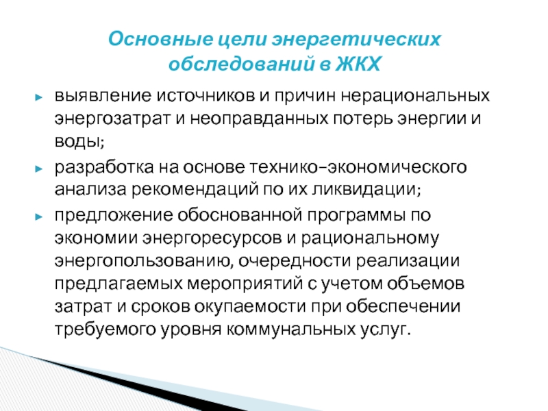Основные цели энергетических обследований в ЖКХ