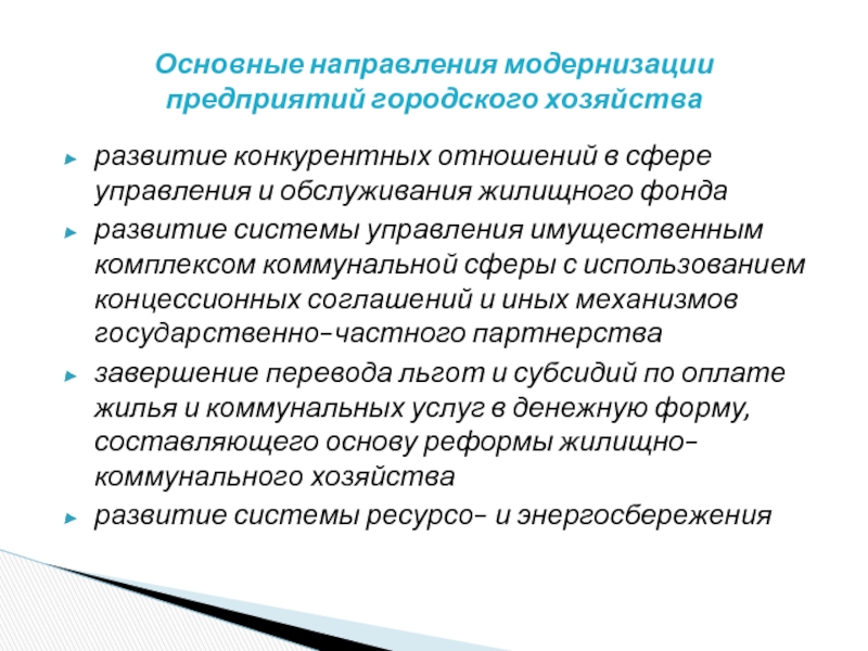 Основные направления модернизации предприятий городского хозяйства