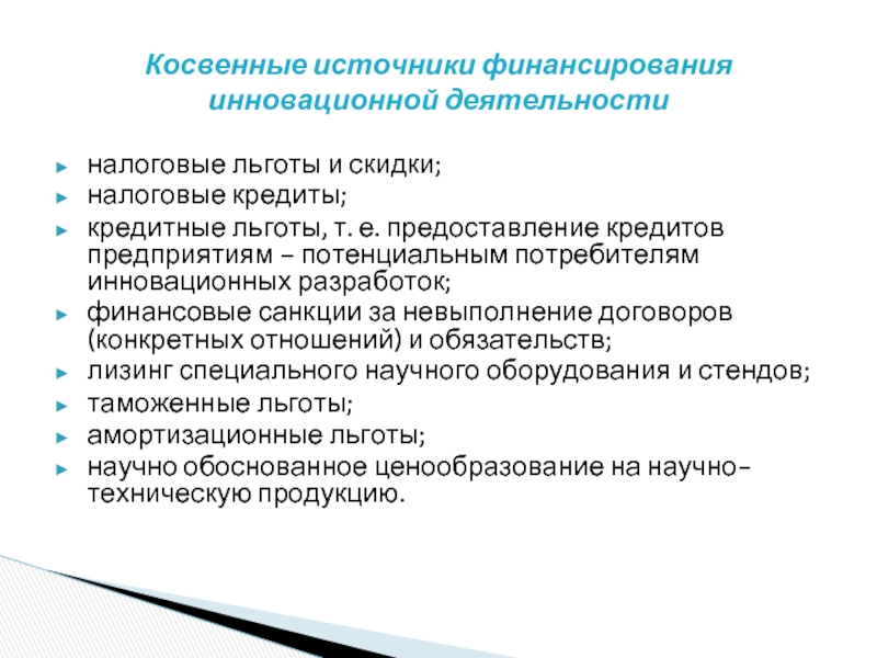 Косвенные источники финансирования инновационной деятельности