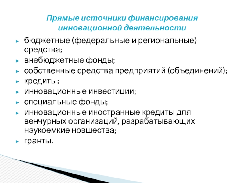 Прямые источники финансирования инновационной деятельности