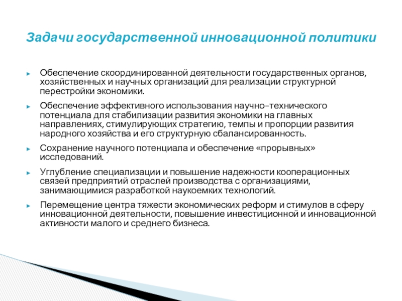 Задачи государственной инновационной политики