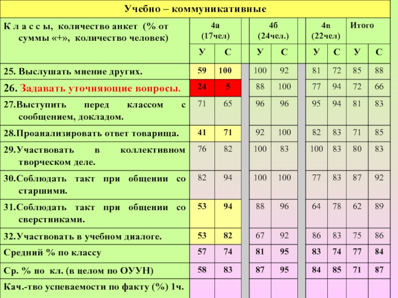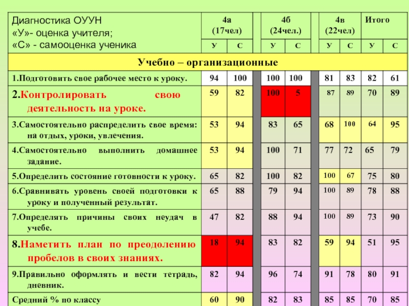 - уровня обученности,