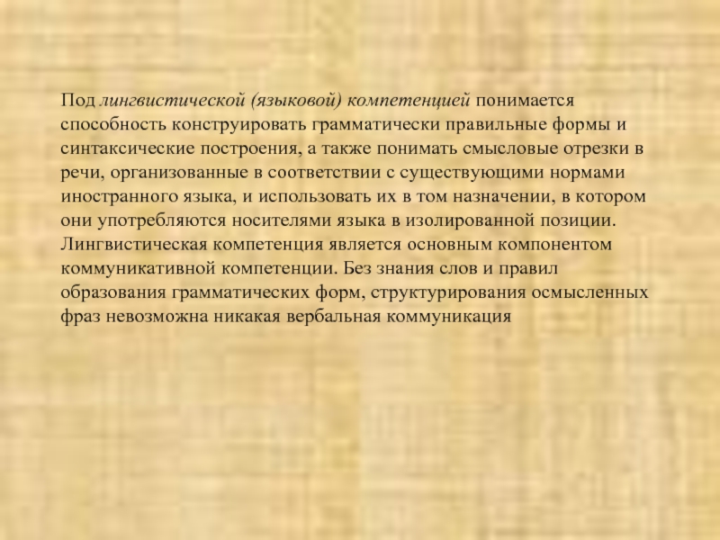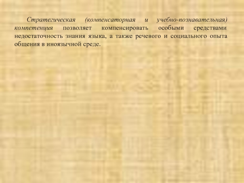 Под дискурсивно (речевой) компетенцией понимается способность использовать определенную стратегию для конструирования и интерпретации текста. В составе дискурсивной компетенции рассматривается спецификация письменных и устных типов текстов и тактик речевого поведения. При этом различаются типы текстов, которые учащийся способен продуцировать и те, которые он должен интерпретировать
