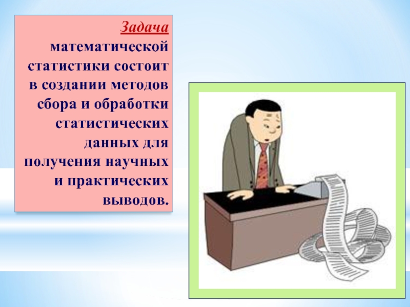 Слайд 4Задача математической статистики состоит в создании методов сбора и обработки статистических