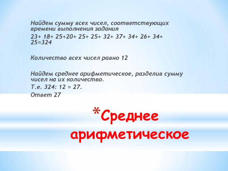 Найдем сумму всех чисел, соответствующих времени выполнения задания