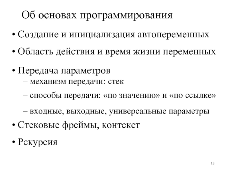 – способы передачи: «по значению» и «по ссылке»