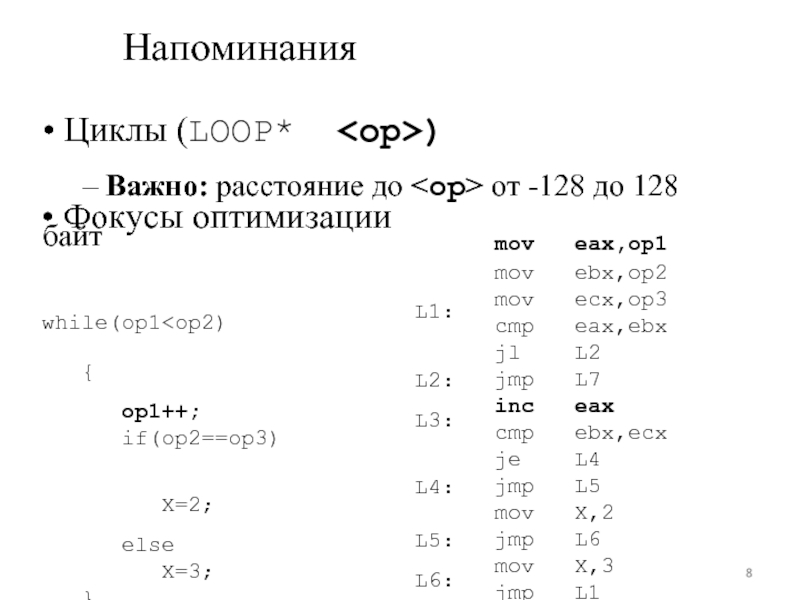 • Фокусы оптимизации L1: mov eax,op1