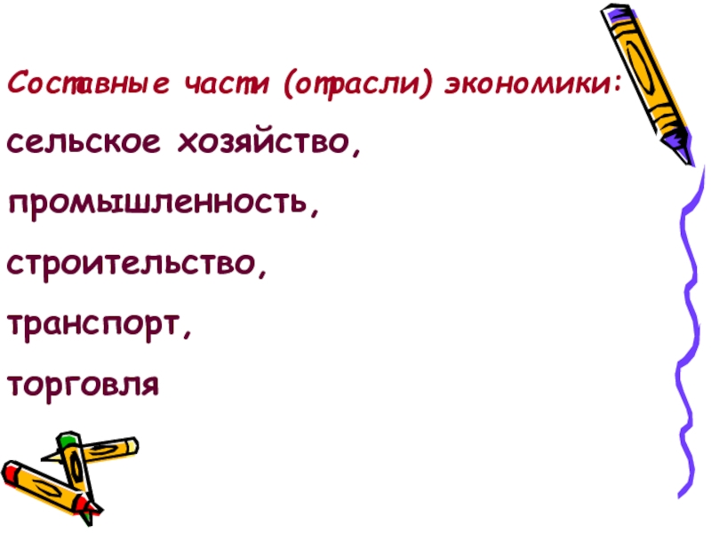 Слайд 3Составные части (отрасли) экономики: