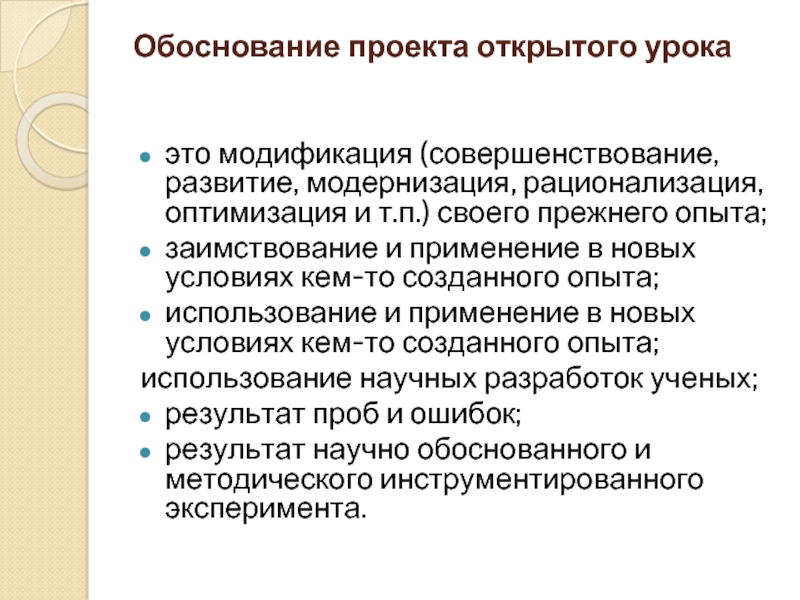 Естественно учитель будет стремится реализовать только что представленный обоснованный