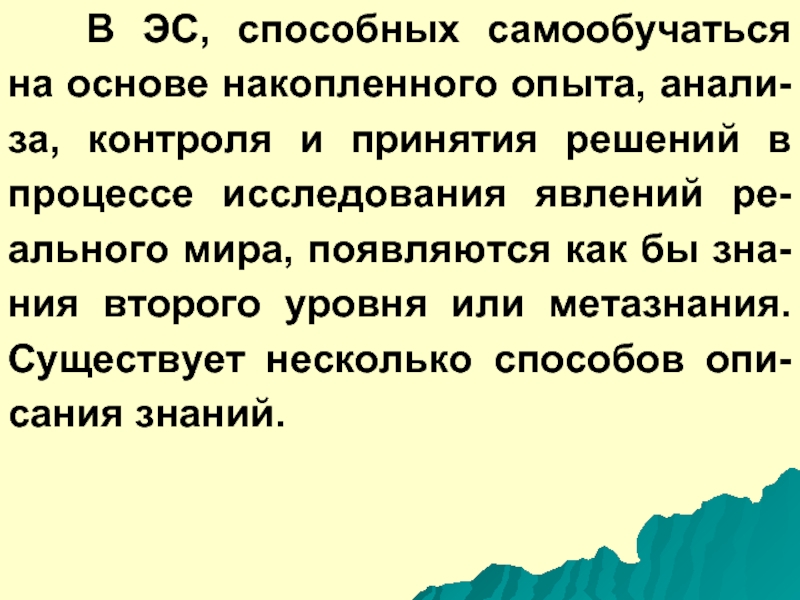 Слайд 19В ЭС, способных самообучаться на основе накопленного опыта, анали-за, контроля и