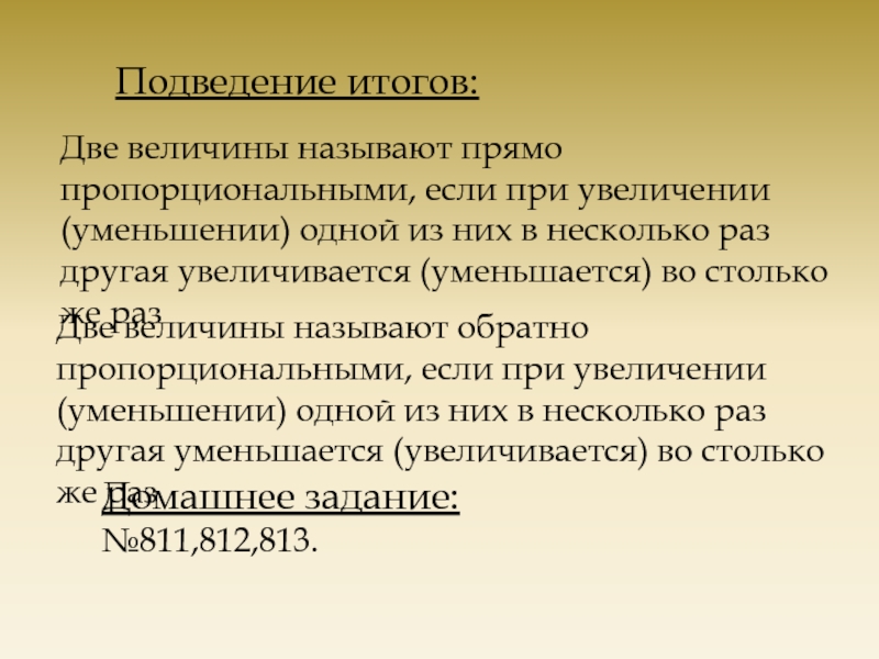 Две величины называют обратно пропорциональными, если при увеличении (уменьшении) одной из них в несколько раз другая уменьшается (увеличивается) во столько же раз