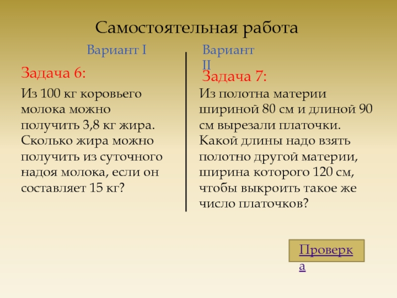 Из полотна материи шириной 80 см и длиной 90 см вырезали платочки. Какой длины надо взять полотно другой материи, ширина которого 120 см, чтобы выкроить такое же число платочков?