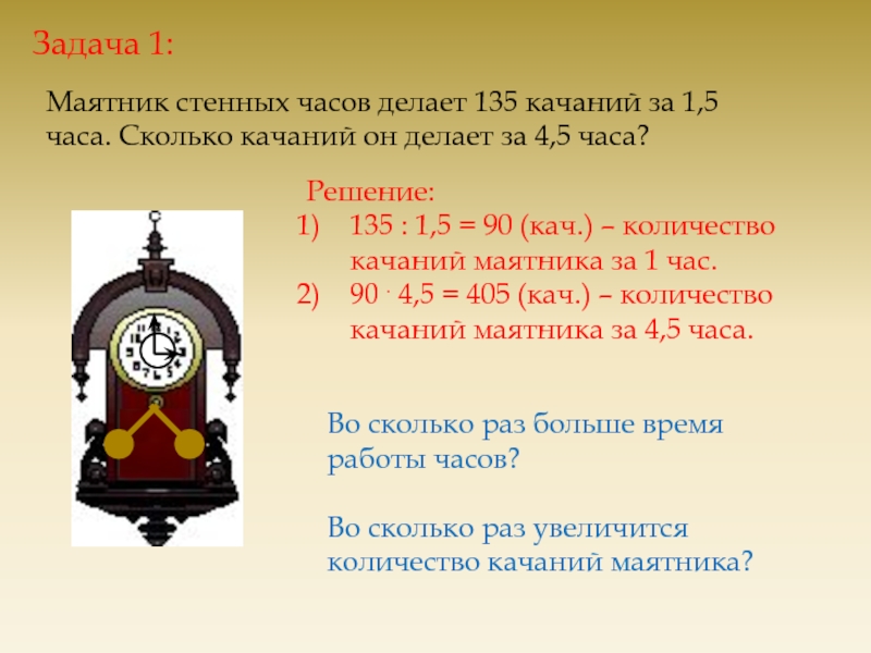 135 : 1,5 = 90 (кач.) – количество качаний маятника за 1 час.