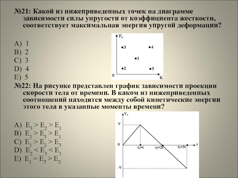 Слайд 12№21: Какой из нижеприведенных точек на диаграмме зависимости силы упругости от