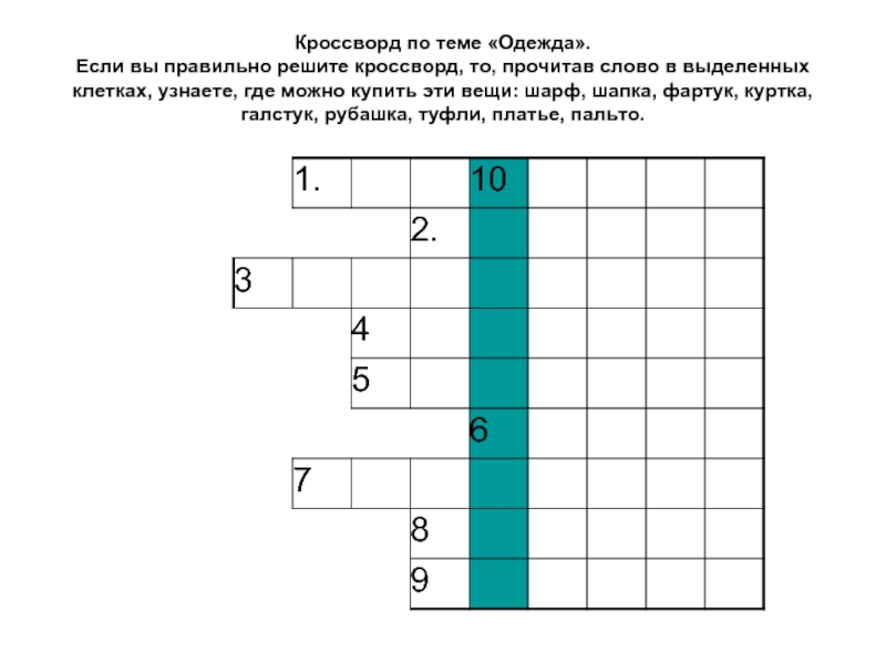 Слайд 3Кроссворд по теме «Одежда». Если вы правильно решите кроссворд, то, прочитав слово